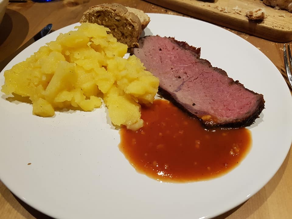 Da auf dem Campingplatz die Möglichkeiten doch begrenzter als zu Hause sind, aber doch etwas anderes zu Essen machen wollten, als einfache Nacken- oder Rückensteaks, haben wir einen Klassiker für den Dutch Oven ausprobiert: